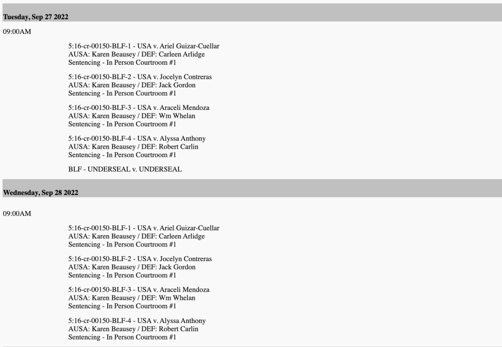Day 1 of 2: Sentencing Hearing for Ariel Guizar-Cuellar and Co-Defendants in Human Trafficking Ring